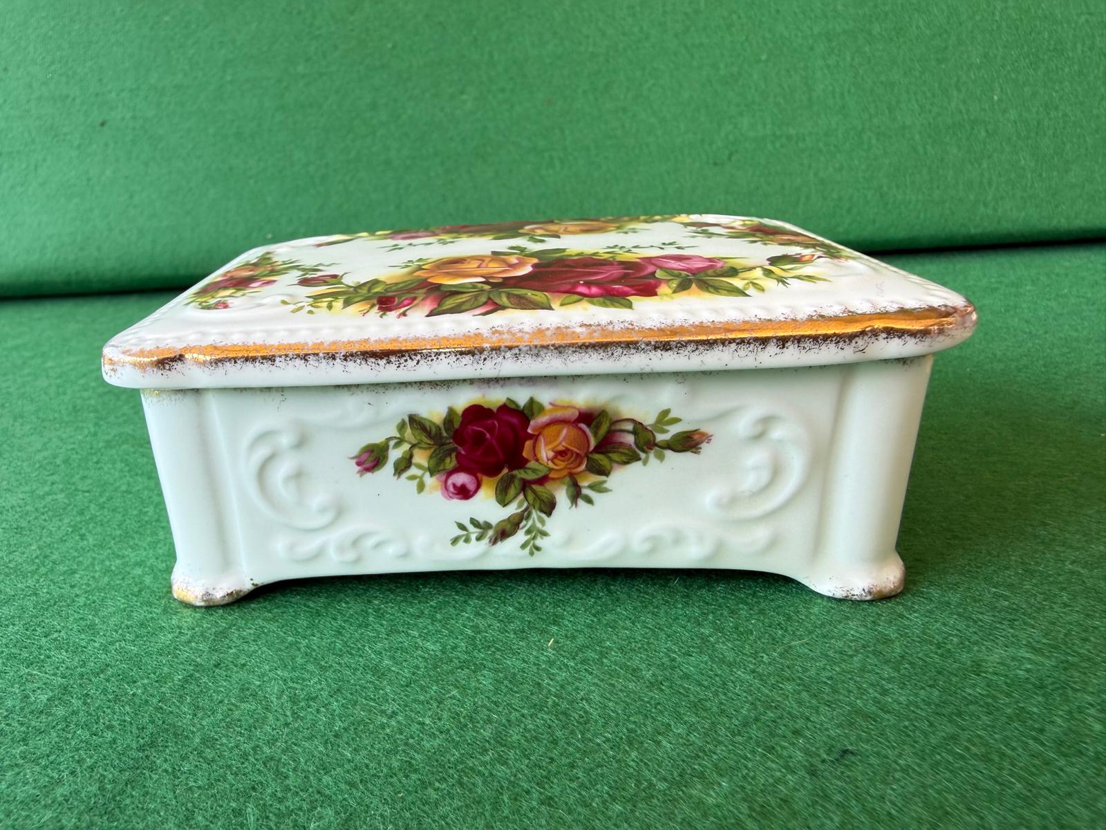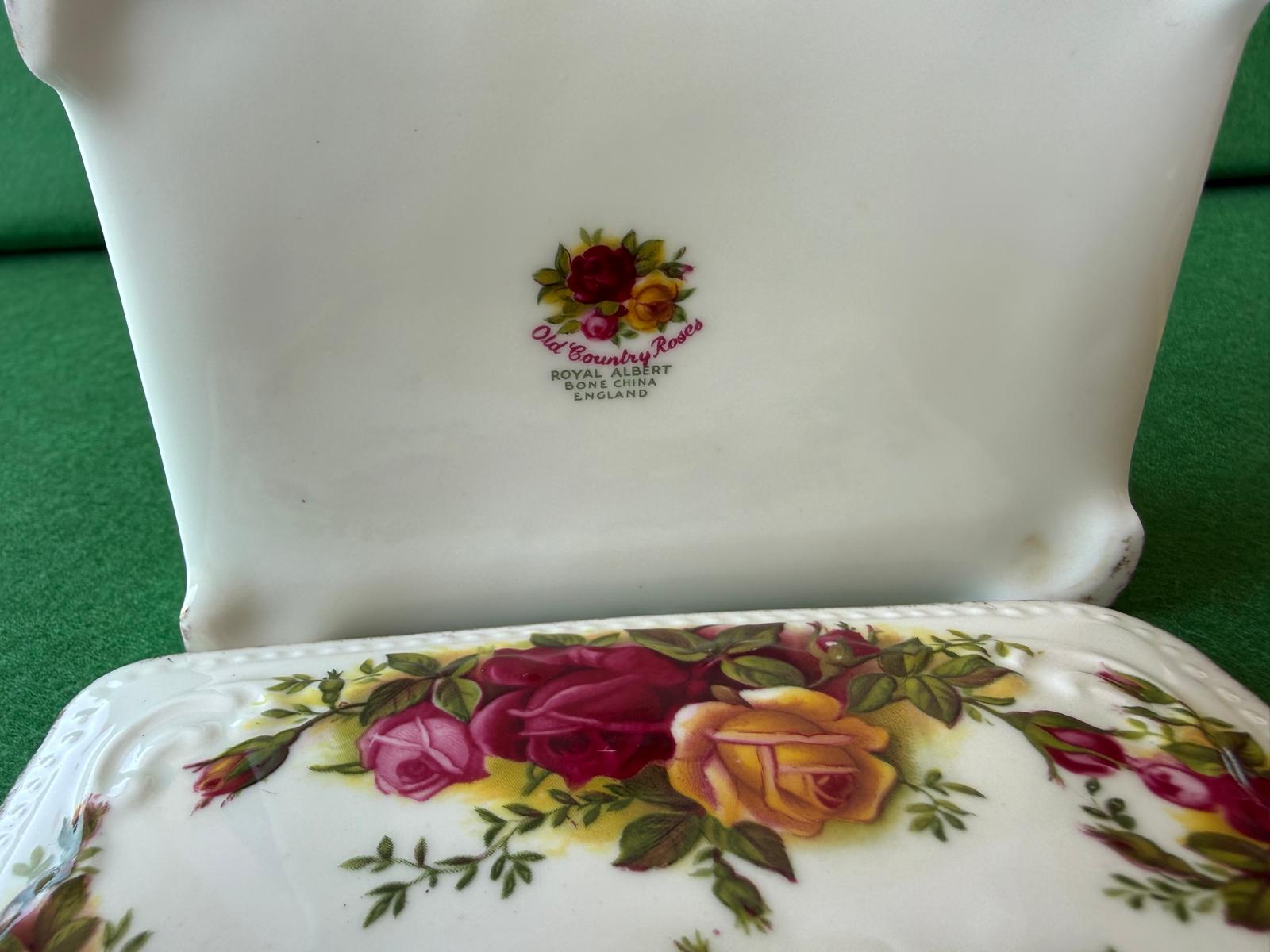 Antika İngiliz Porselen Royal Albert Old Country Roses Bone China Tereyağlık Kutu 12cm