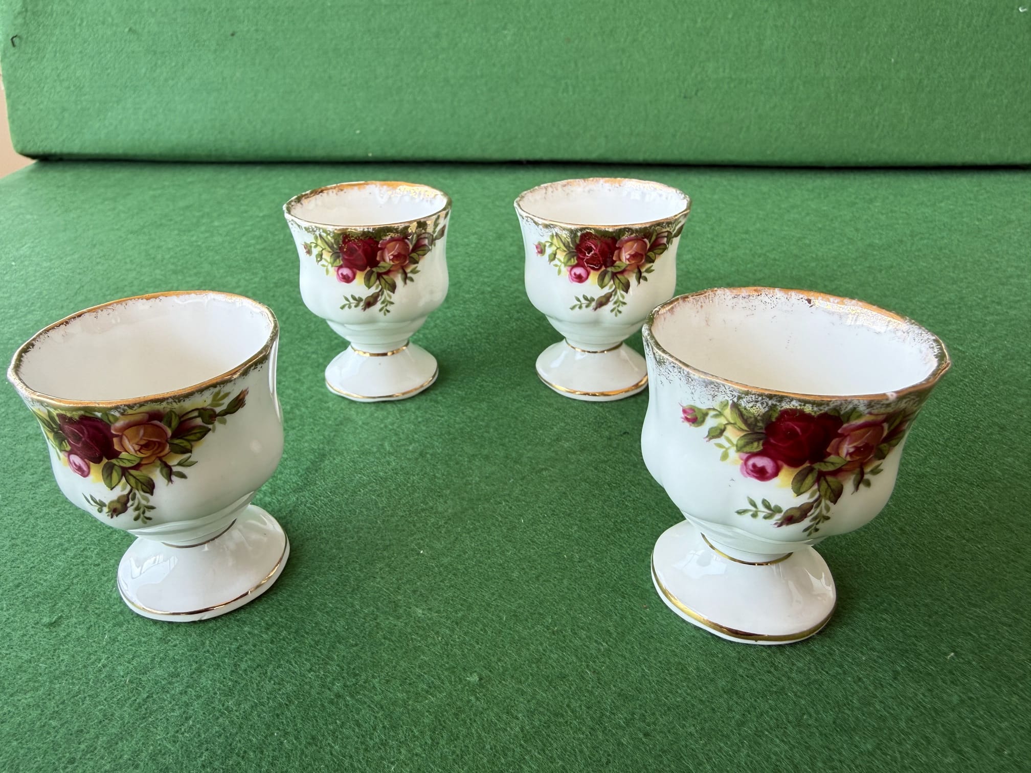 Antika İngiliz Porselen Royal Albert Old Country Roses Bone China Yumurtalık 5cm 4 Adet