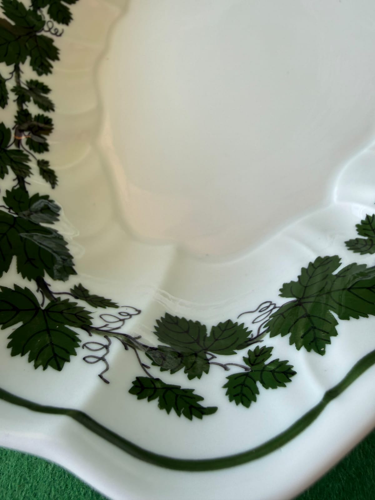 Antika Meissen Alman Porselen Salata Servis Tabağı 28cm Yeşil Yapraklı