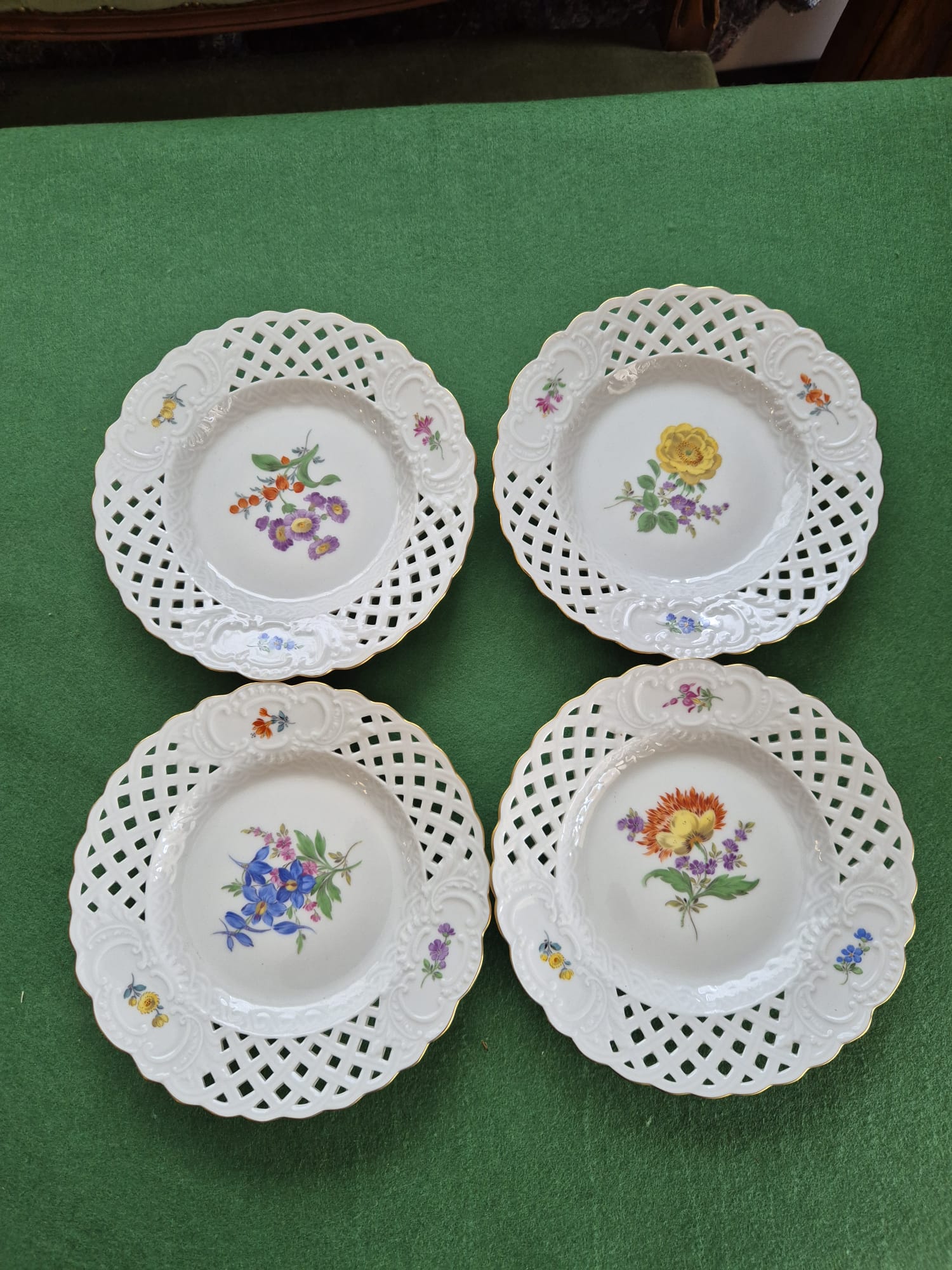 Antika Meissen Porselen Tabak Seti Porcelain Antique 4 Adet Set Tabak 19Cm Kusursuz Orjinal Set