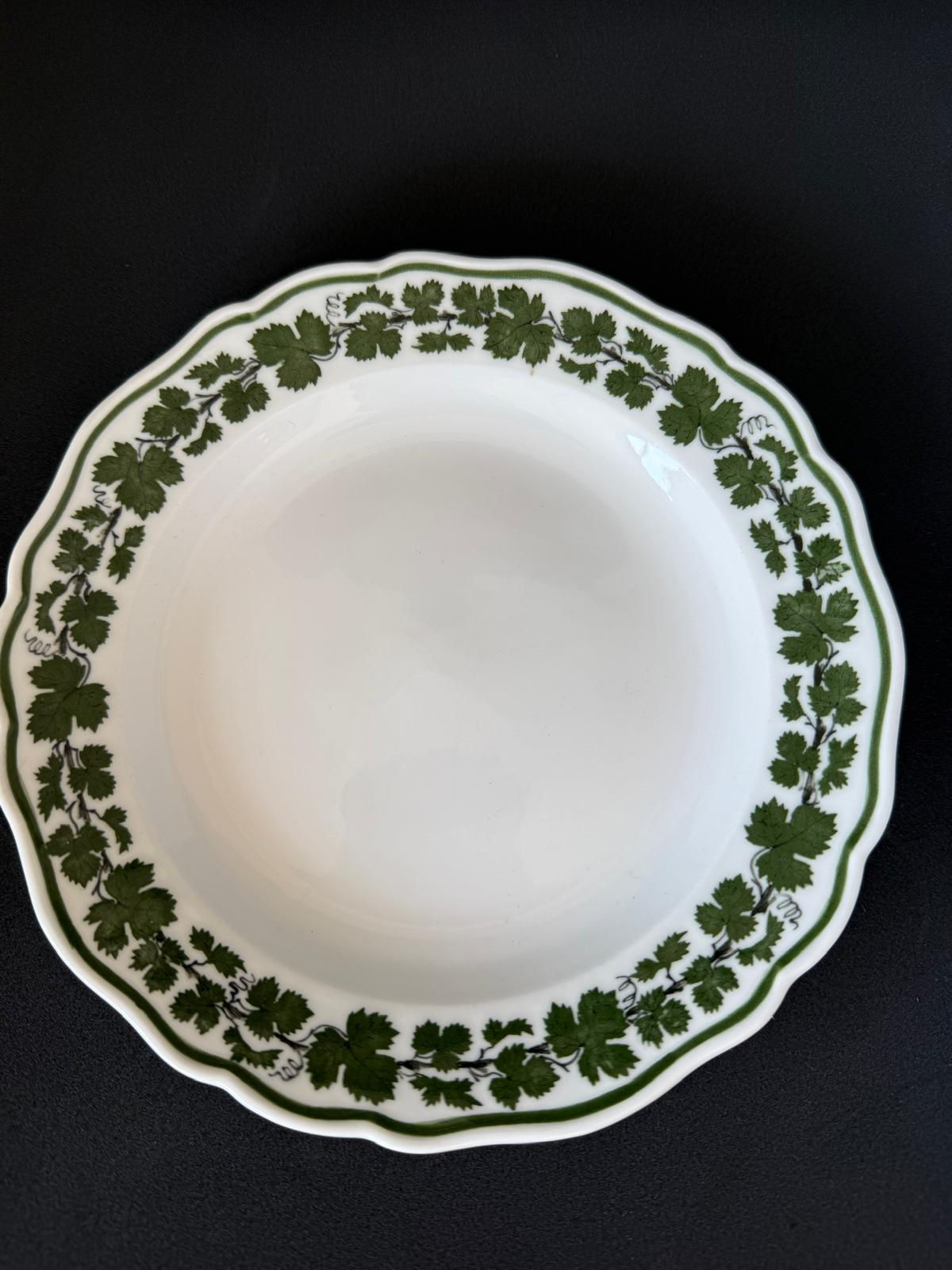 Antíka Orjinal Meissen Alman Porcelen Tabak 18cm Yeşil Asma Yapraklı